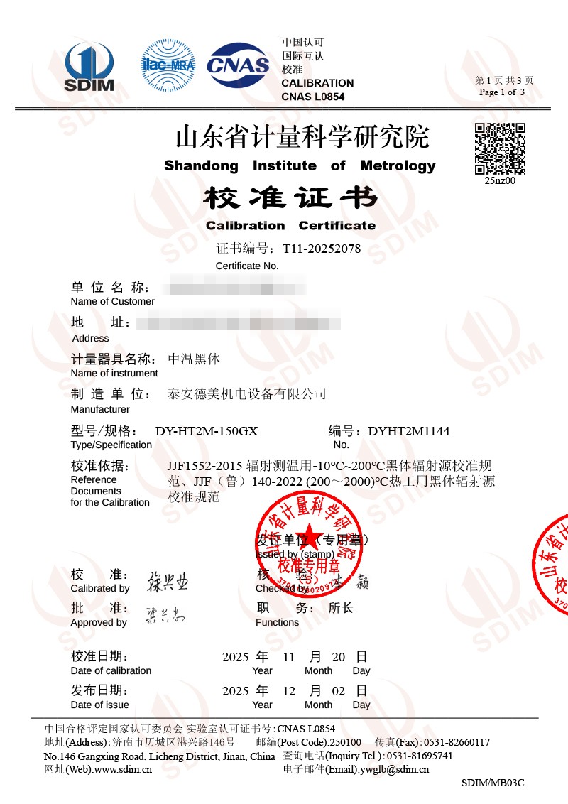 中温黑体校准证书