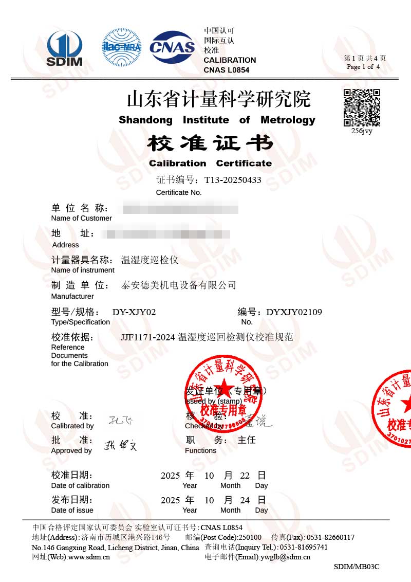 温湿度巡检仪校准证书 2025-10-30 本文被阅读 90 次