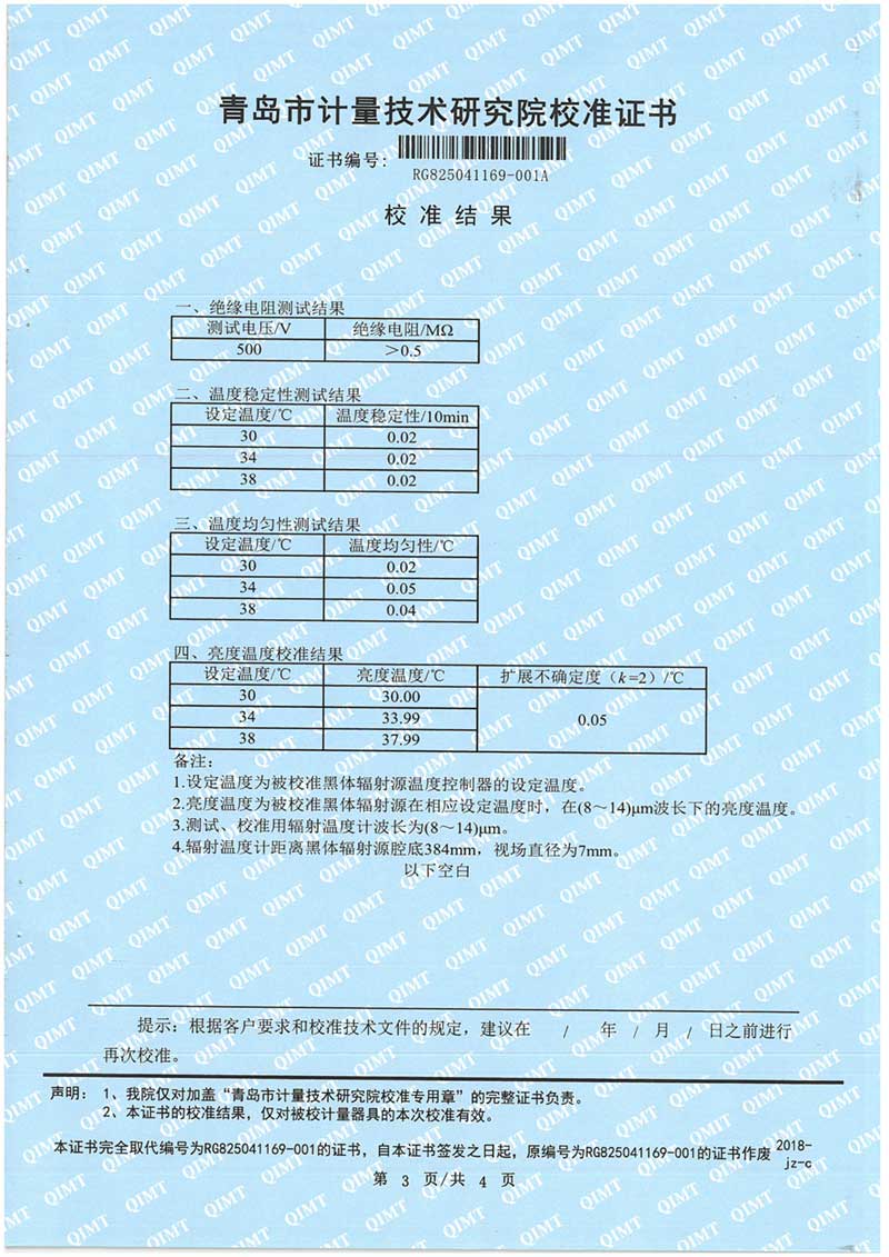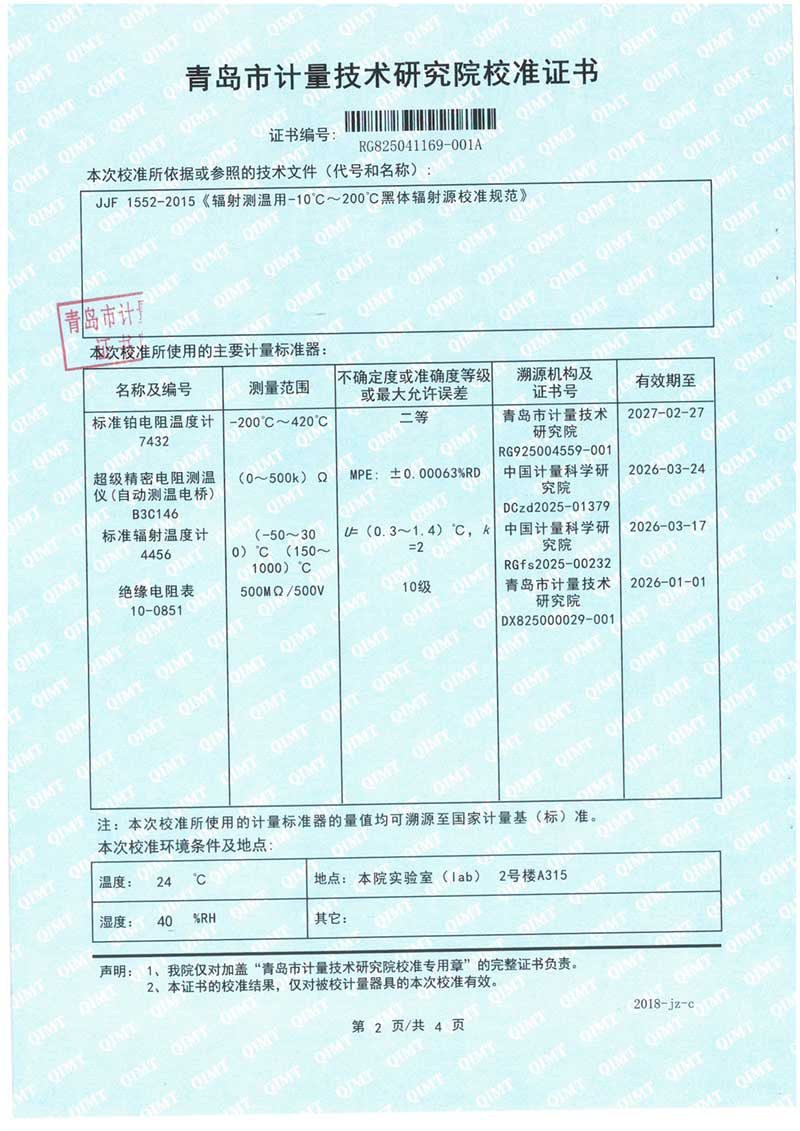 额温计黑体空腔校准证书 2025-11-5 本文被阅读 15 次