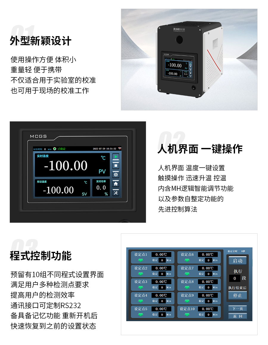 1)使用操作方便、体积小重量轻,便于携带,不仅适合用于实验室的校准,也可用于现场的校准工作;