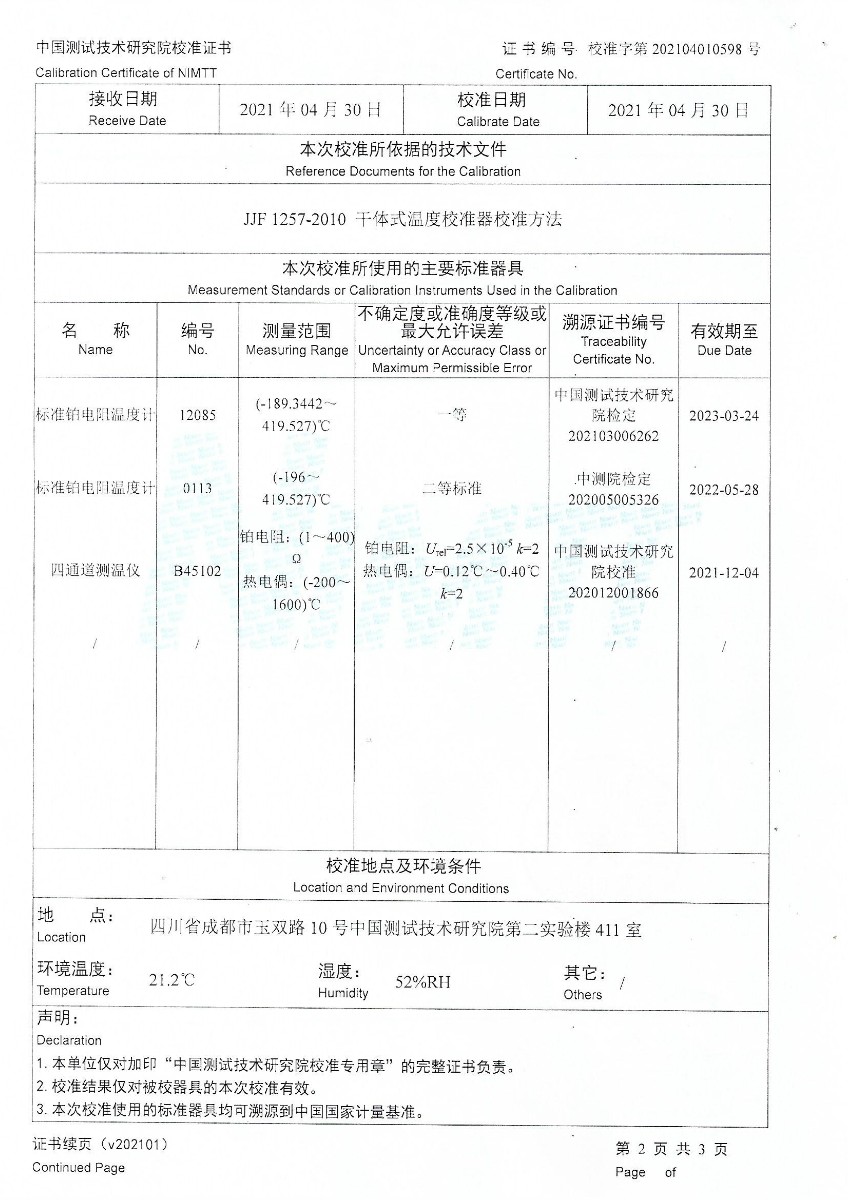 上一条:中集安瑞环科技股份有限公司-制冷恒温槽下一条:便携式干体炉(-30-150℃)校准证书