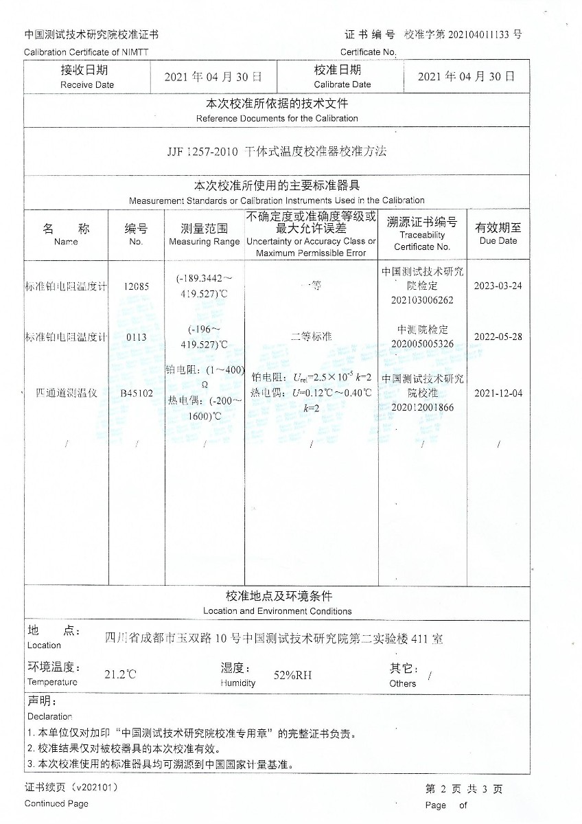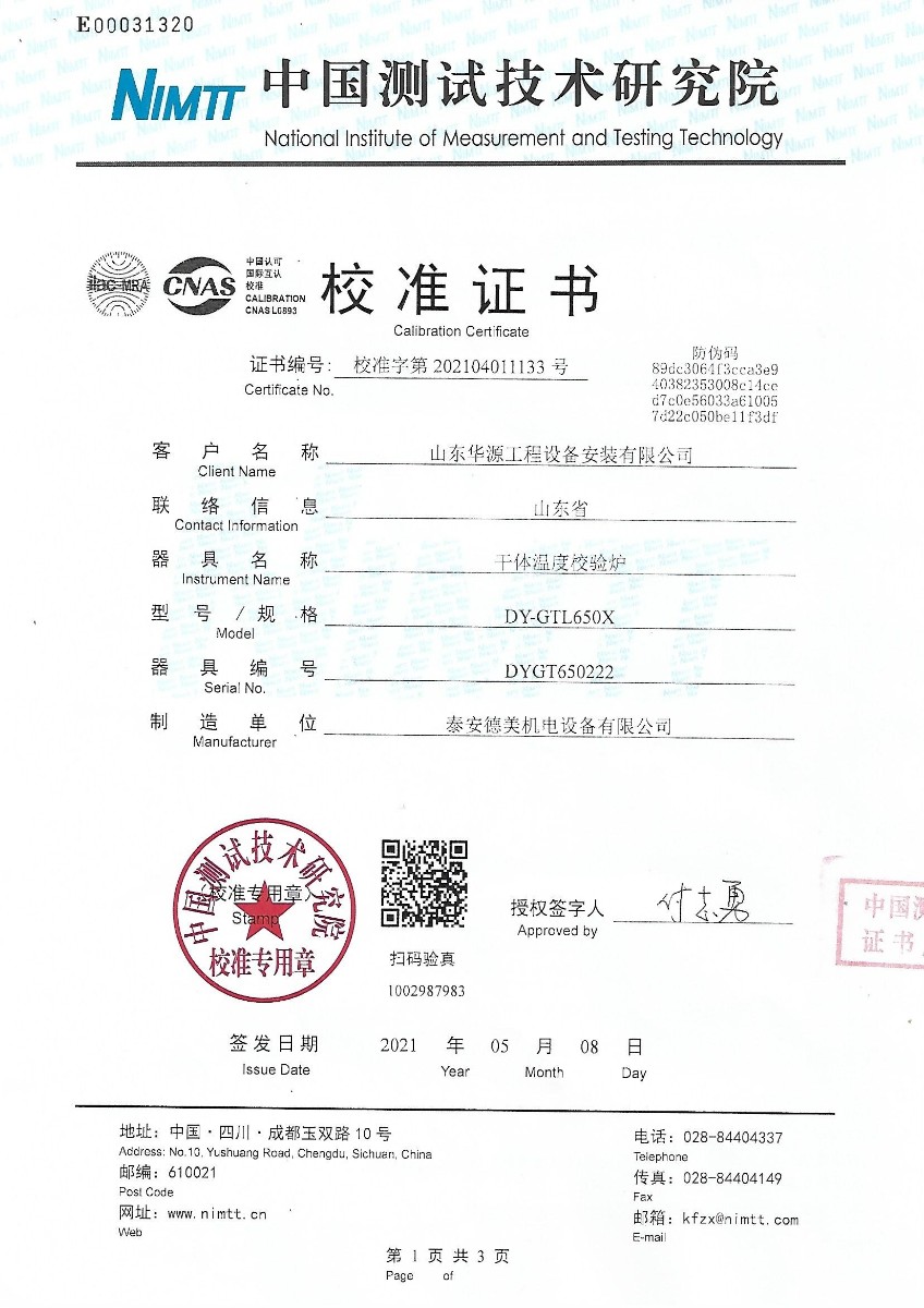 上一条:马鞍山科思化学有限公司-干体温度校验炉下一条:便携式干体炉(-30-150℃)校准证书