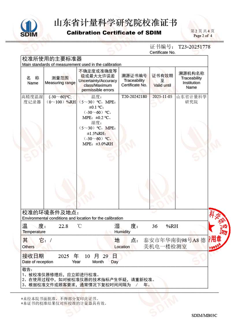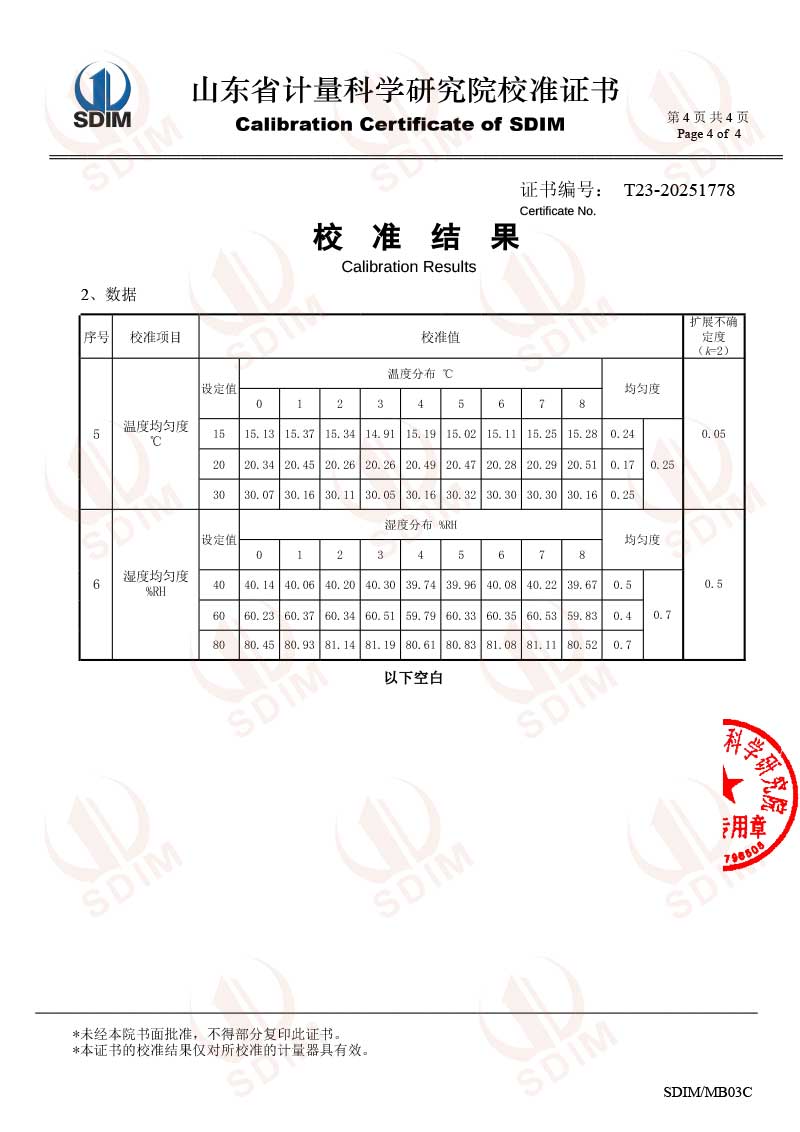 温湿度检定箱(-5~65℃)校准证书 2025-11-3 本文被阅读 78 次