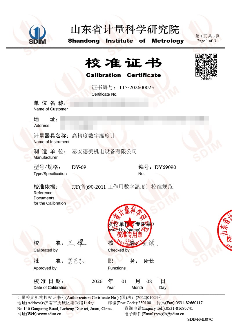高精度数字温度计校准证书 2026-1-13 本文被阅读 17 次