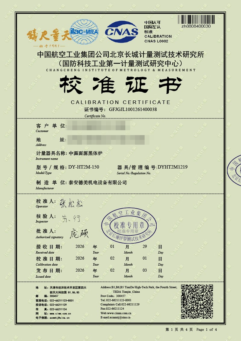 中温面源黑体炉-校准证书 2026-2-11 本文被阅读 82 次