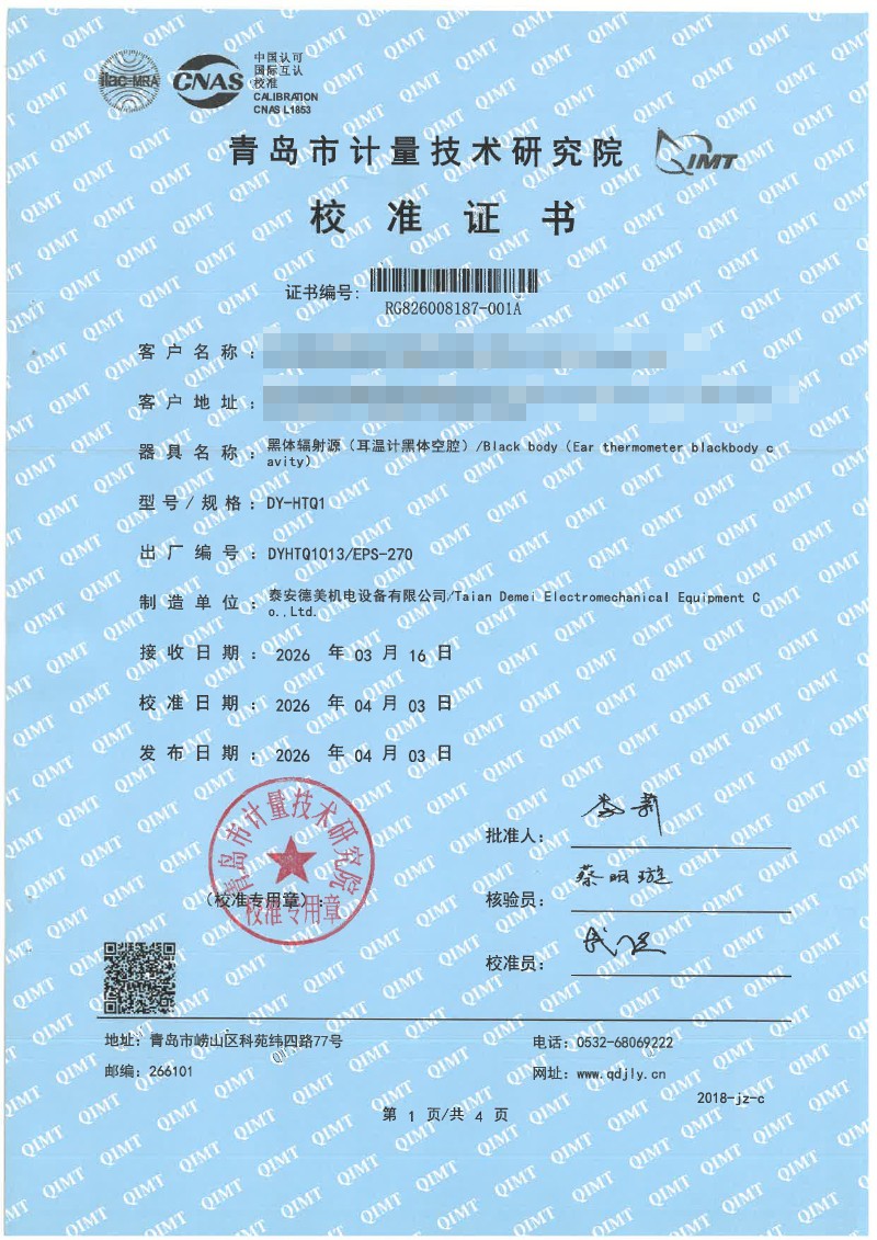 耳温空腔-校准证书 2026-4-20 本文被阅读 2 次