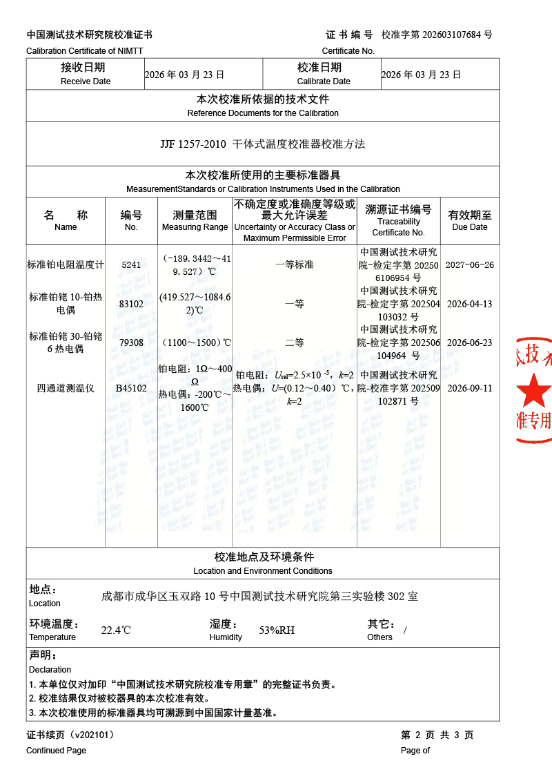 高温干体炉-校准证书 2026-3-25 本文被阅读 23 次