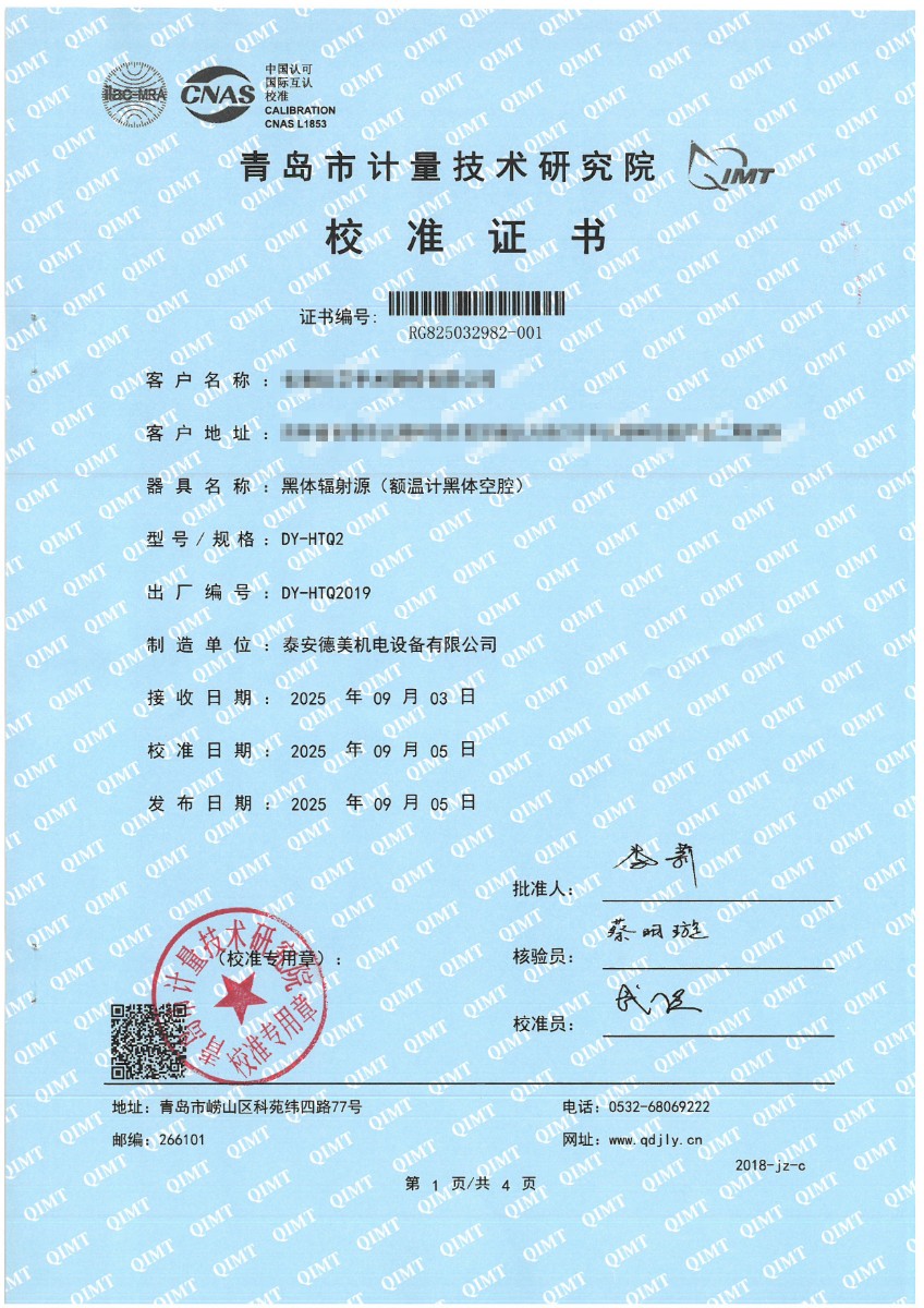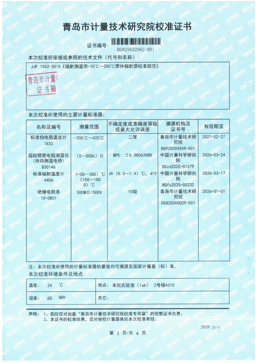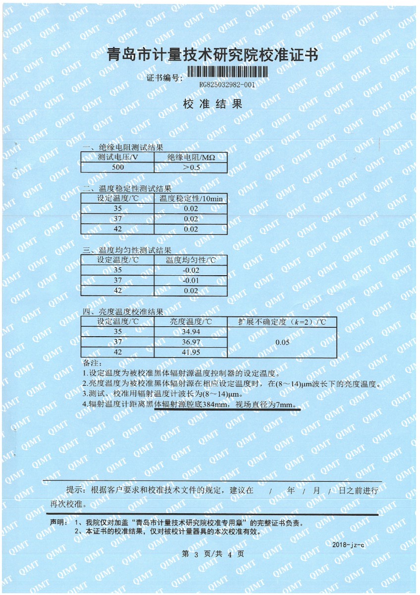 额温计黑体空腔-校准证书 2025-9-23 本文被阅读 1085 次
