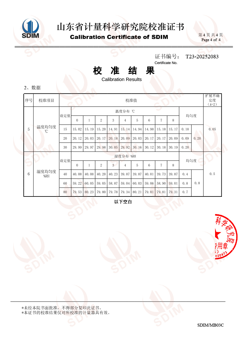温湿度检定箱校准证书 2025-12-11 本文被阅读 58 次
