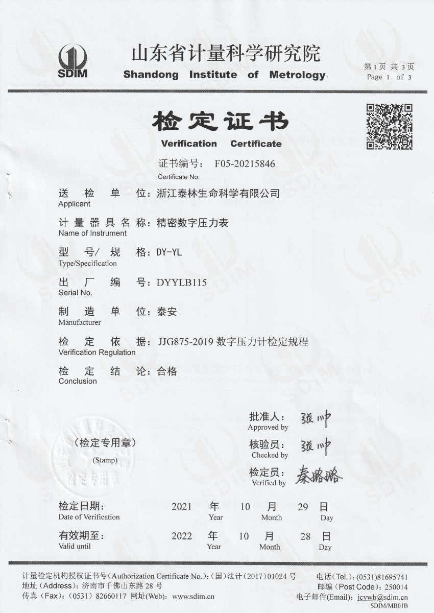 浙江泰林生命科学有限公司-精密数字压力表 2021-11-5 本文被阅读 12558 次