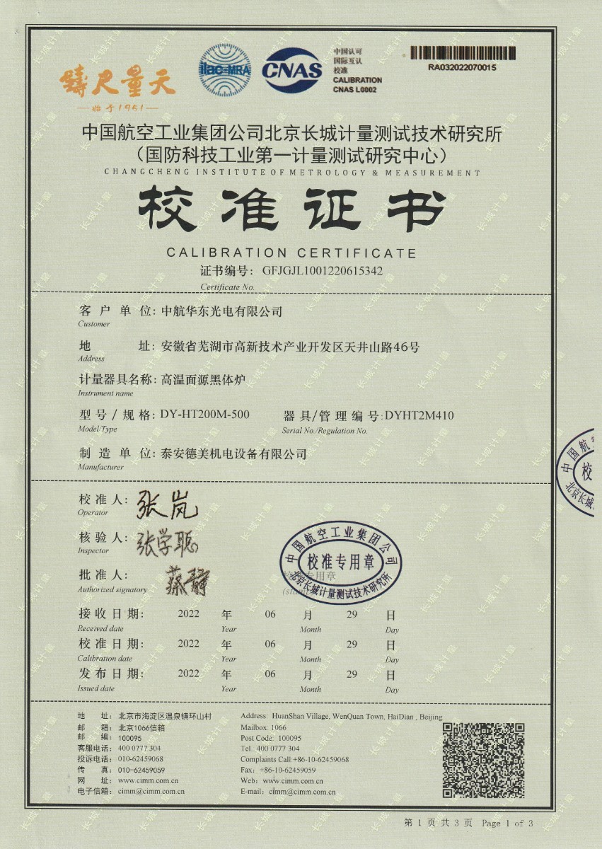中航华东光电有限公司-高温面源黑体炉 2022-7-13 本文被阅读 13139 次
