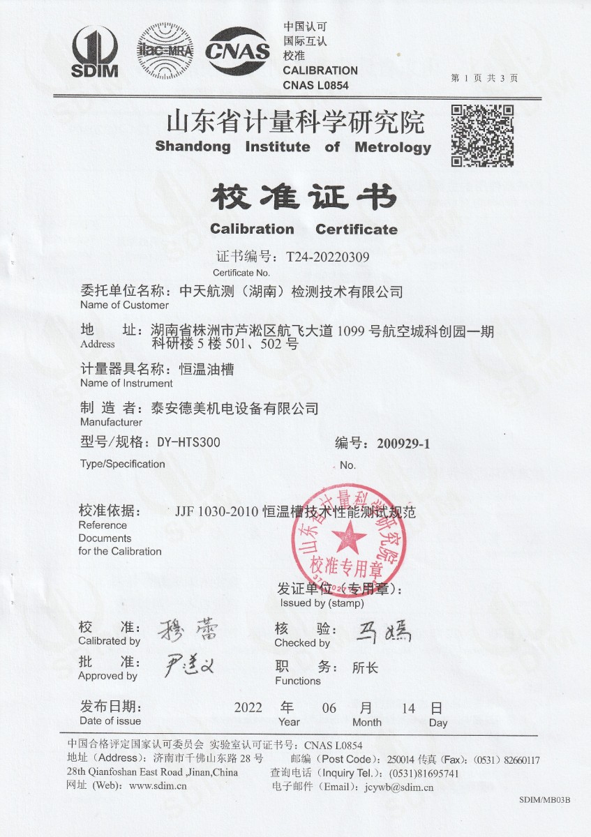 中天航测(湖南)检测技术有限公司-恒温油槽 2022-7-15 本文被阅读 12980 次