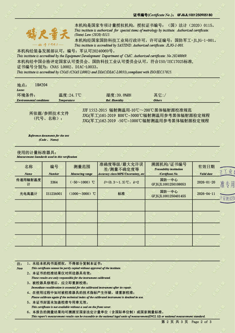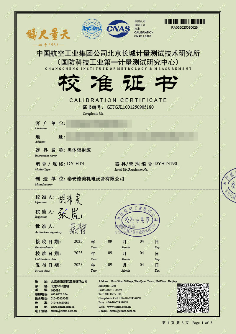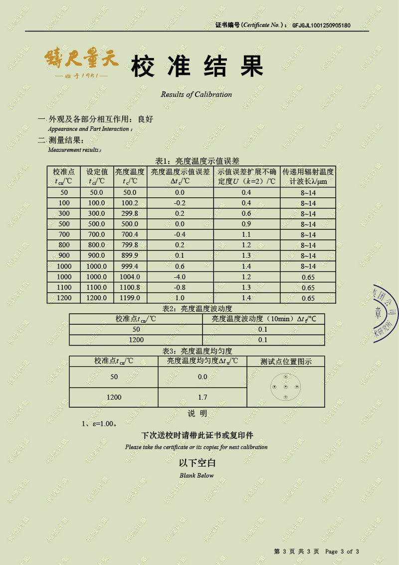 黑体辐射源(50-1200℃)校准证书 2025-9-22 本文被阅读 562 次