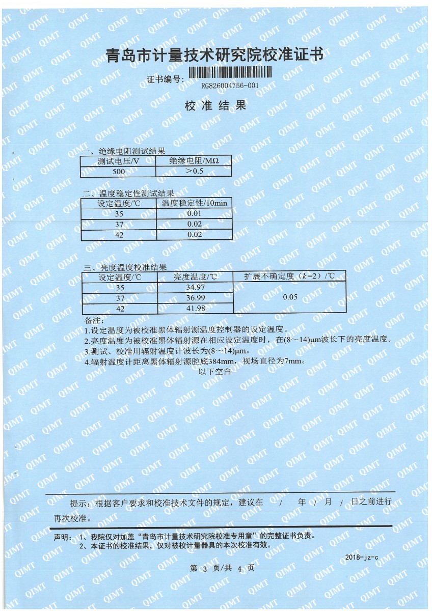 额温计空腔校准证书