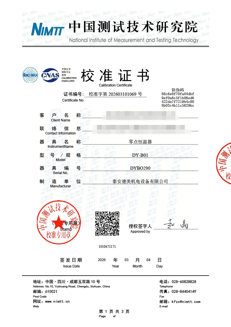 零点恒温器-校准证书 2026-3-10 本文被阅读 1 次