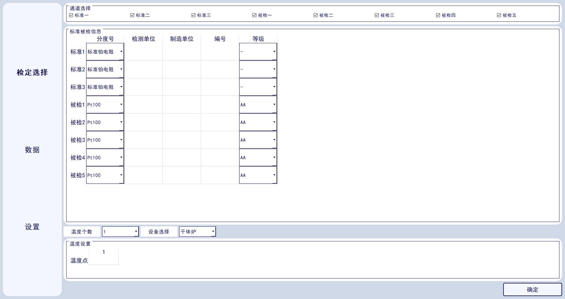 1.设备具备多个独立的标准通道,用于测量标准铂电阻(Pt25),标准热电偶;