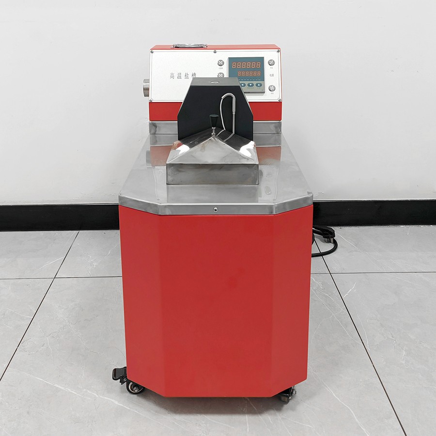 产品采用先进的自动控制系统,界面友好,操作方便,控制精度高。主要是由加热系统、控温系统、搅拌系统所组成。槽体分混合区与工作区。在混合区内由加热器产生的热量使槽内固态盐(介质)升温熔化成盐液,当盐液温度上升到接近设定温度时,控温系统根据感温器测得的温度来控制加热器工作,再经过搅拌系统的强烈搅拌充分均匀后的盐液(介质)送入少受外界干扰的工作区。从而得到一个温度稳定温场均匀的液体空间。