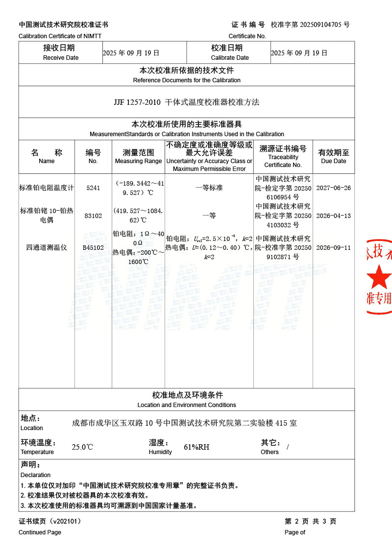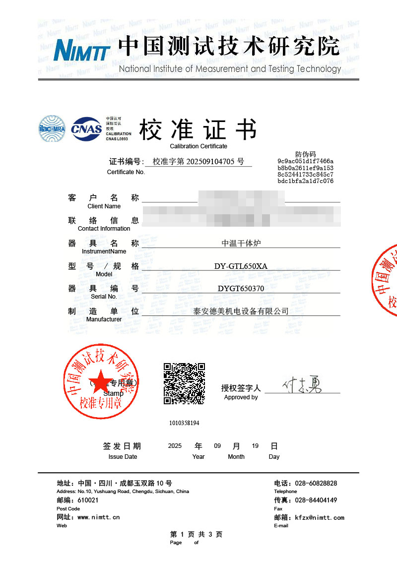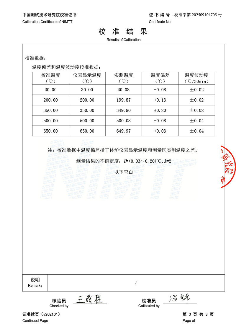中温干体炉(30-650℃)校准证书 2025-9-22 本文被阅读 703 次