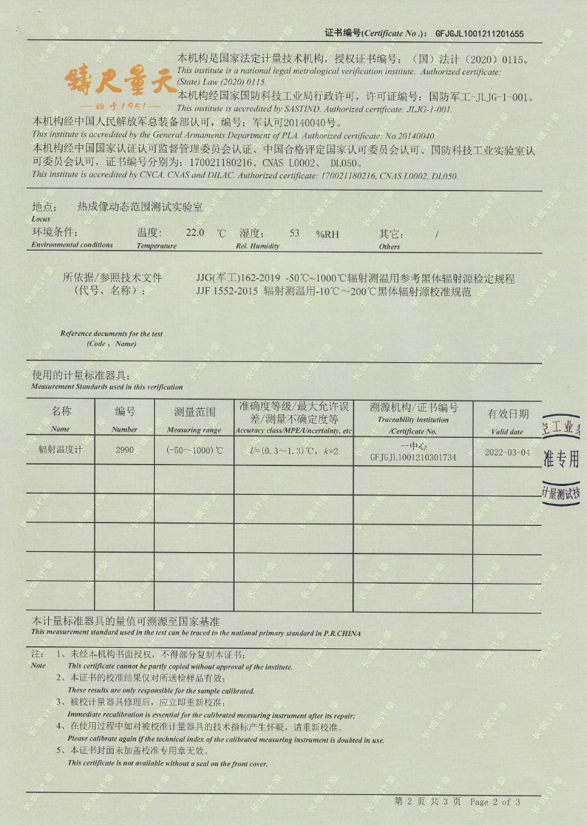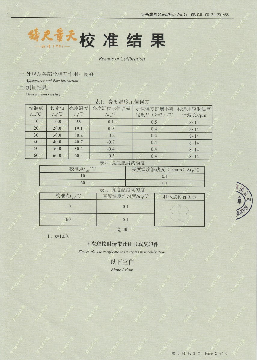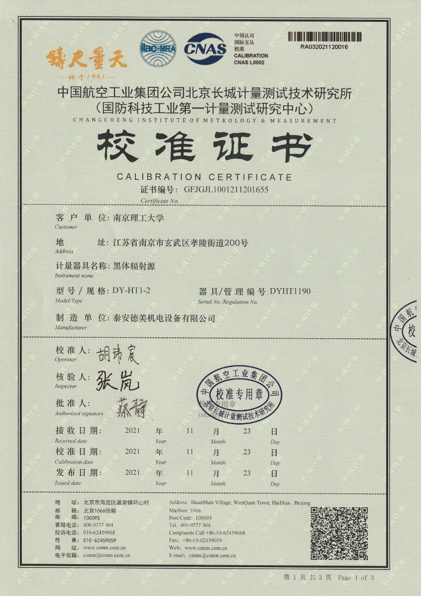 南京理工大学-黑体辐射源校准证书10-60℃ 2021-12-4 本文被阅读 13778 次