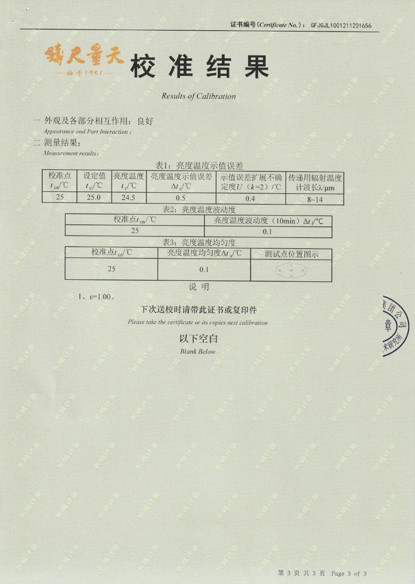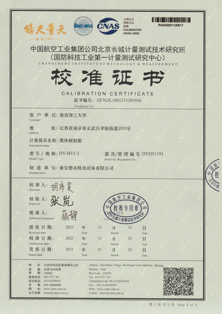 南京理工大学-黑体辐射源校准证书25℃ 2021-12-4 本文被阅读 15561 次