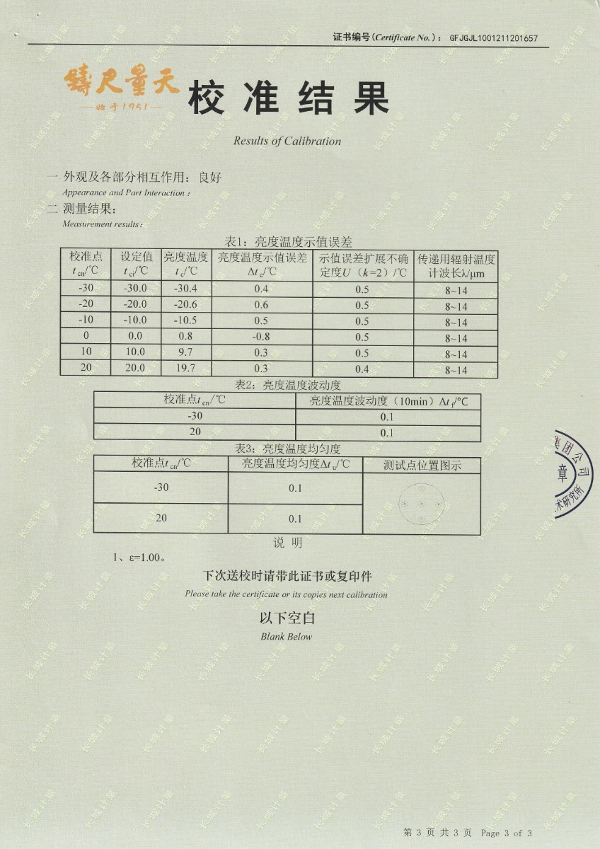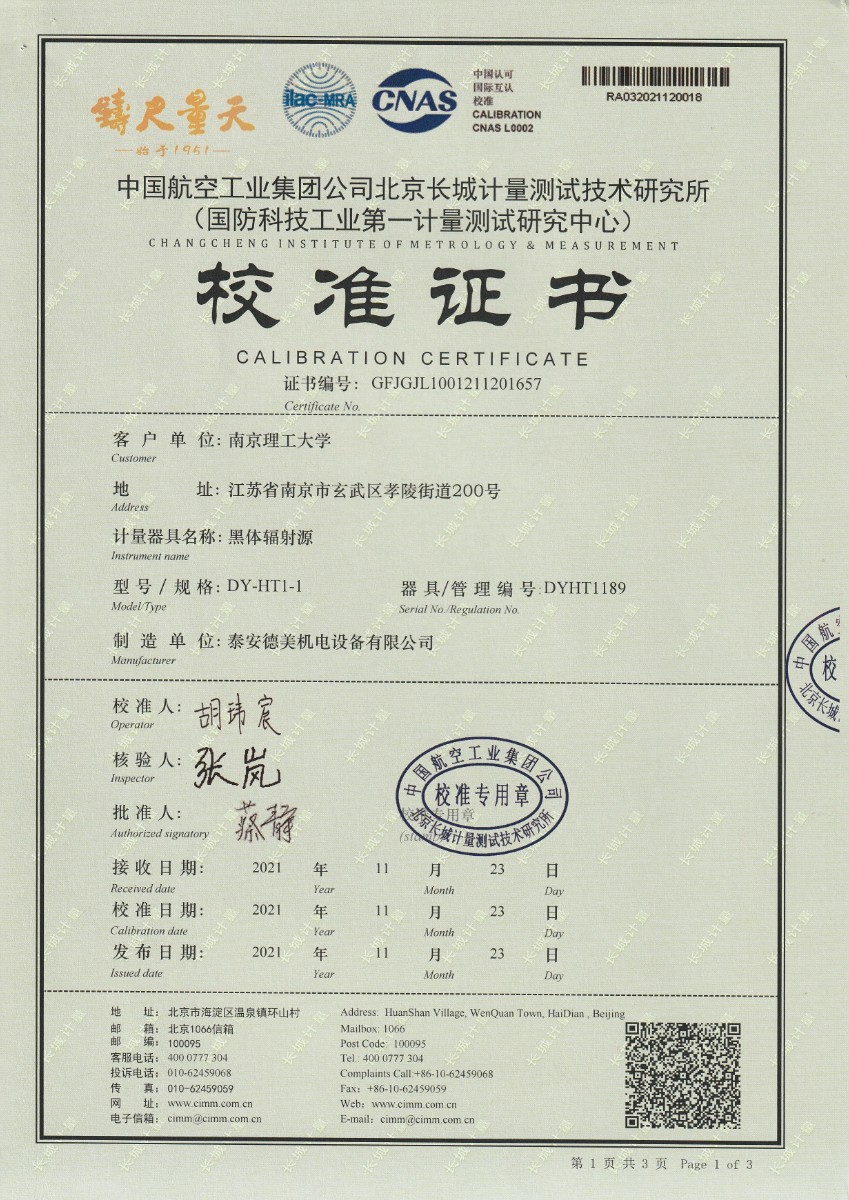 南京理工大学-黑体辐射源校准证书-30-20℃ 2021-12-4 本文被阅读 12040 次