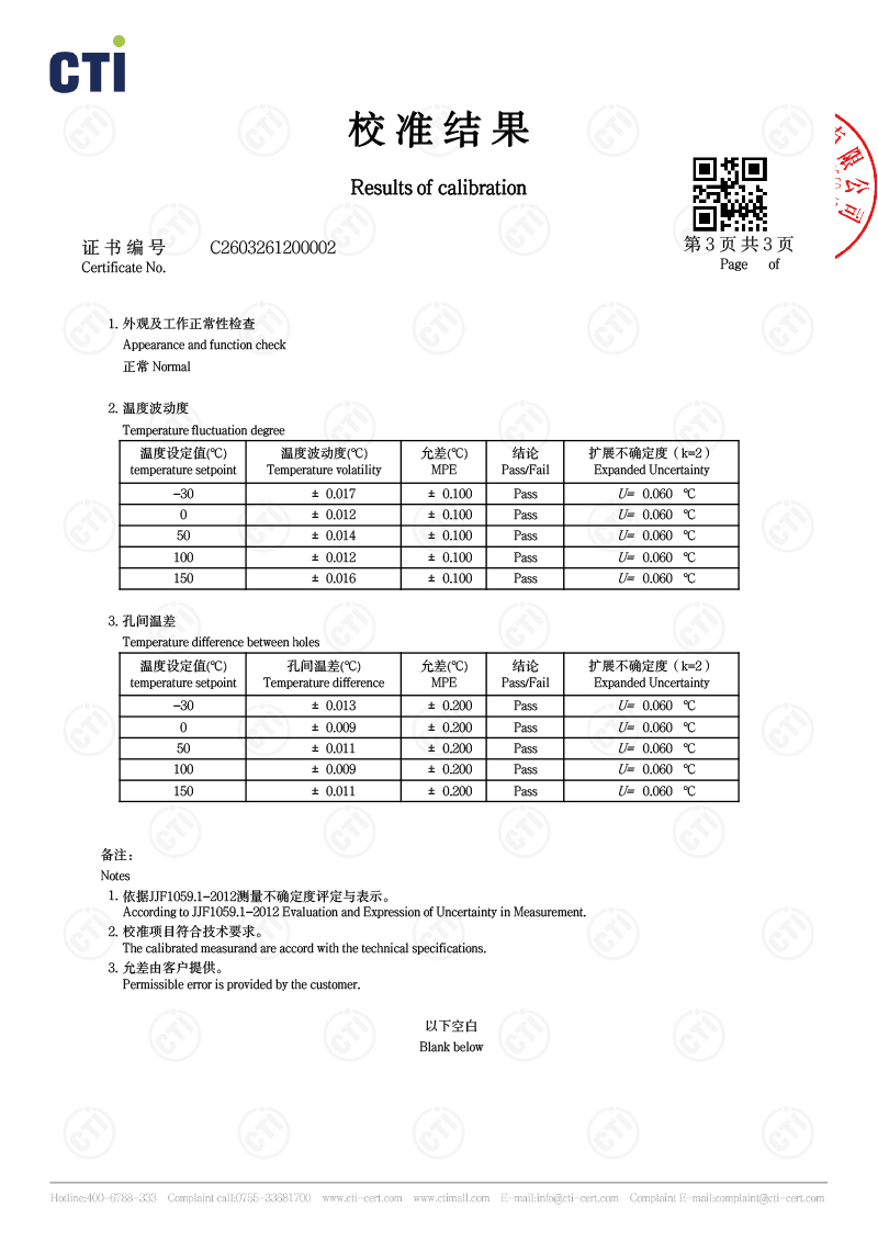 低温智能干体炉(电测款)校准证书 2026-4-7 本文被阅读 16 次