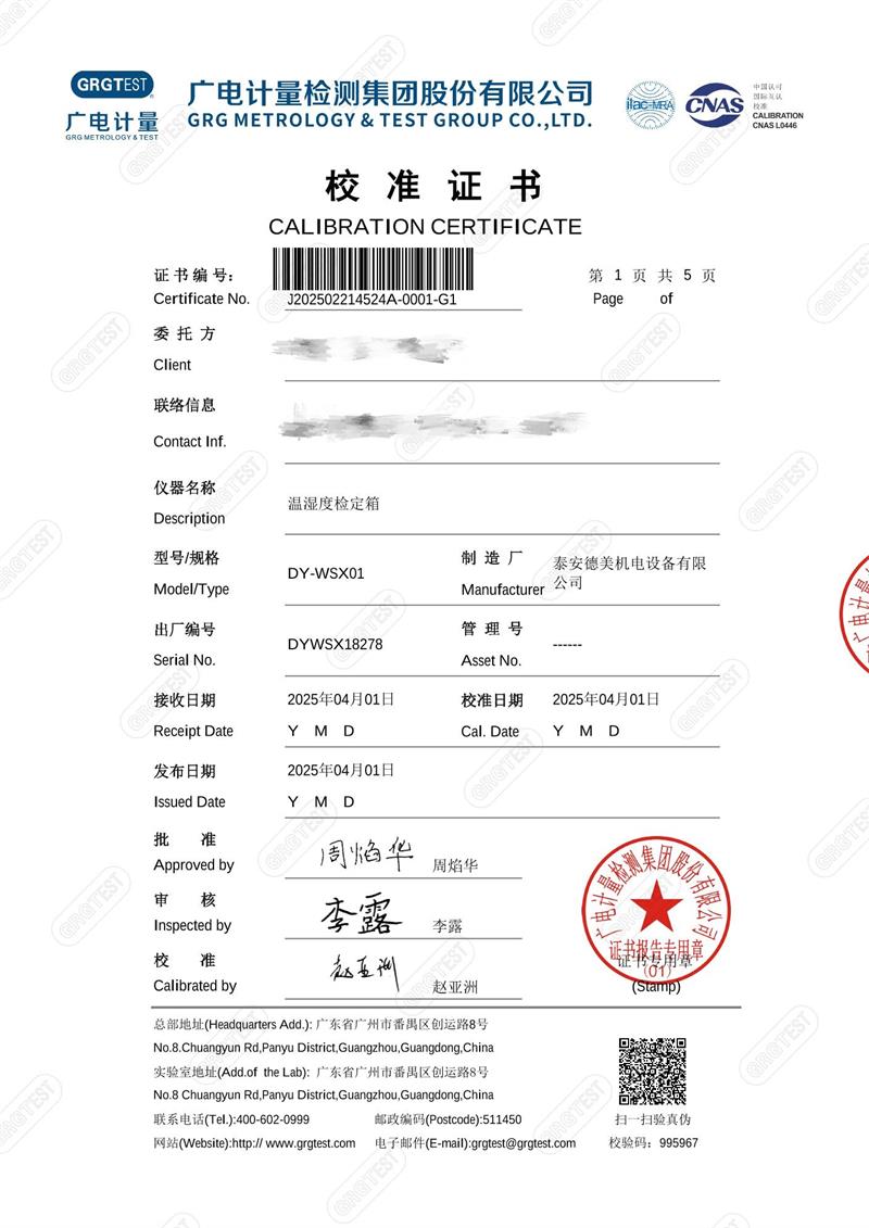 温湿度检定箱18278(-5~65℃)校准证书 2025-4-18 本文被阅读 3513 次